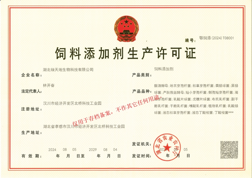 湖北綠天地生物科技有限公司 (簡稱綠天地公司)投資7000萬元,擁有25000平方米的廠房和國內(nèi)先進的設(shè)備360臺套,建有微生物發(fā)酵、發(fā)酵冷凍干燥、低溫造粒等8個車間,發(fā)酵罐總?cè)萘?50立方米,專業(yè)的飼用級益生菌發(fā)酵生產(chǎn)基地。 公司已通過IS09001:2015質(zhì)量管理體系認(rèn)證。 綠天地公司得到了華中農(nóng)業(yè)大學(xué)、中國農(nóng)...
